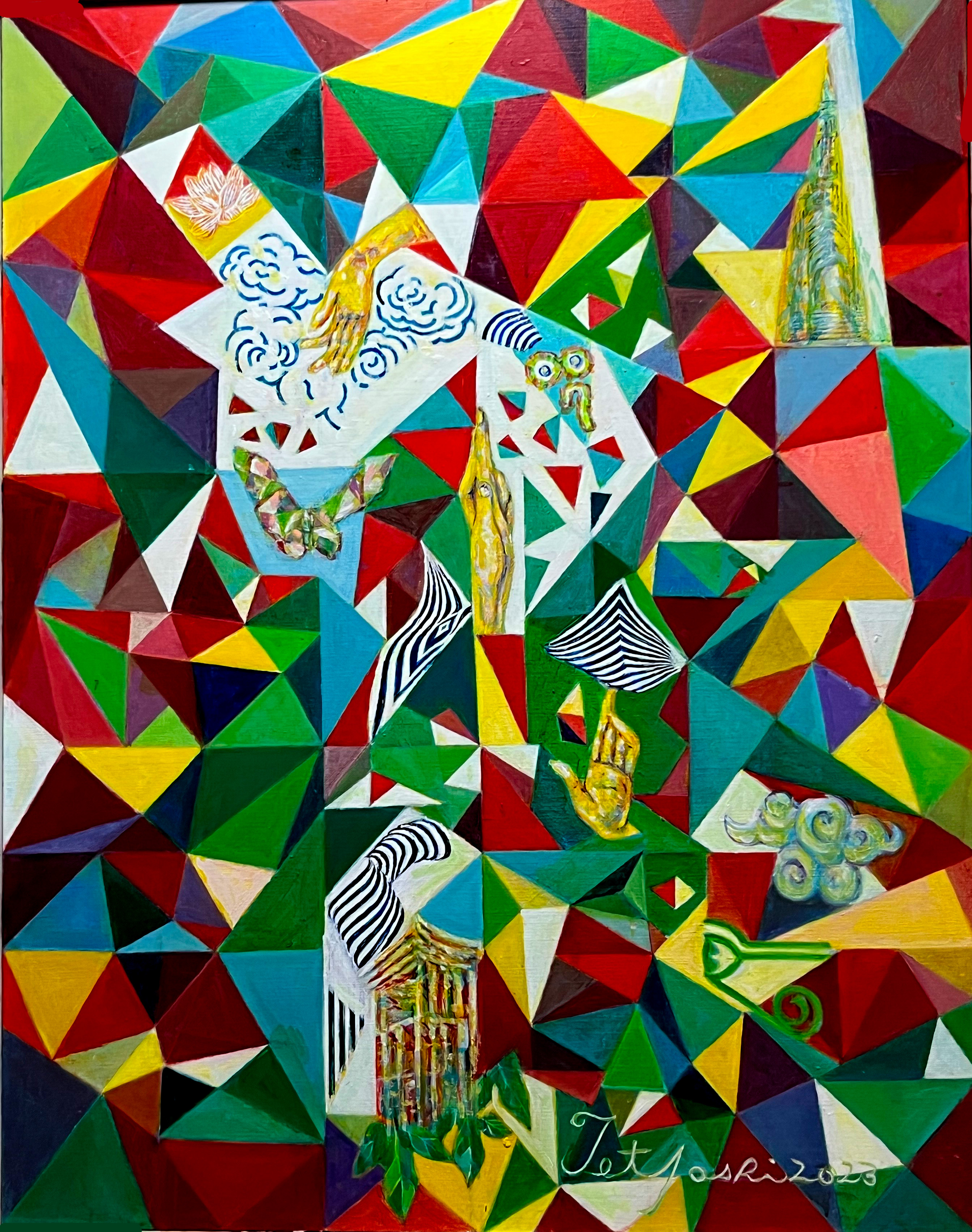 幼少期から絵画の才能を開花させ、東京藝術大学卒業後はニューヨークへ。海外の風に刺激を受けデザイナーとして長年活躍してきた吉岡徹氏は、70歳で束縛のない純粋美術の世界へと歩みを進めています。幾何学的形態と色彩が織りなす抽象画には、神仏への畏敬と人生の機微が込められている、と語る吉岡氏に、美術との出会いから現在の想いまで幅広く伺いました。